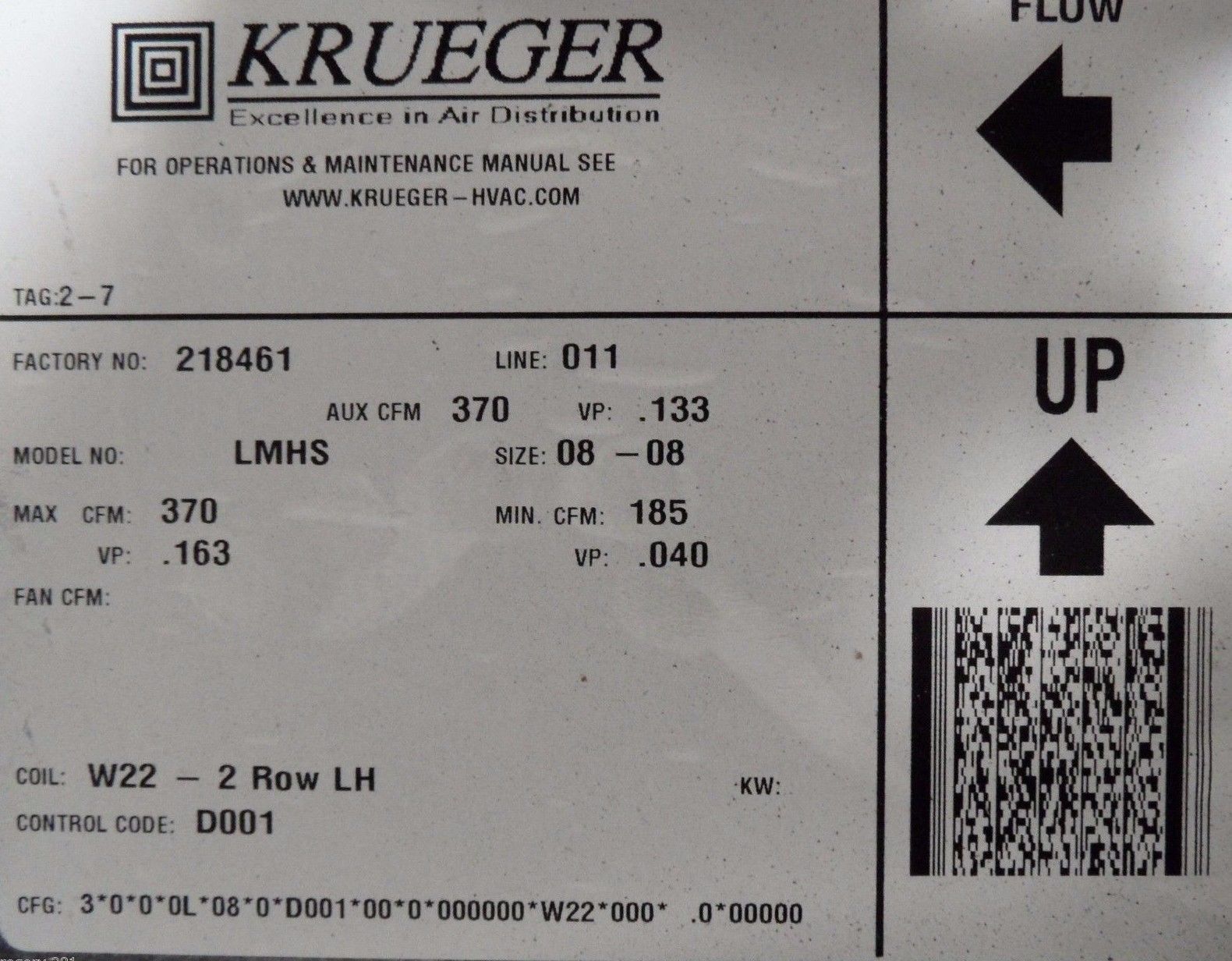 Krueger LMHS 370 Single Duct Terminal Unit Size 08-08 w/ Hot Water Heat 75275201