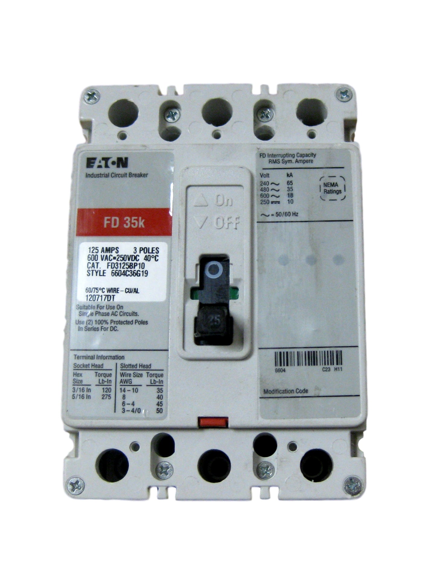 Eaton Cutler Hammer 125A CIRCUIT BREAKER FD35K FD3125BP10 6604C36G19 3 Poles New
