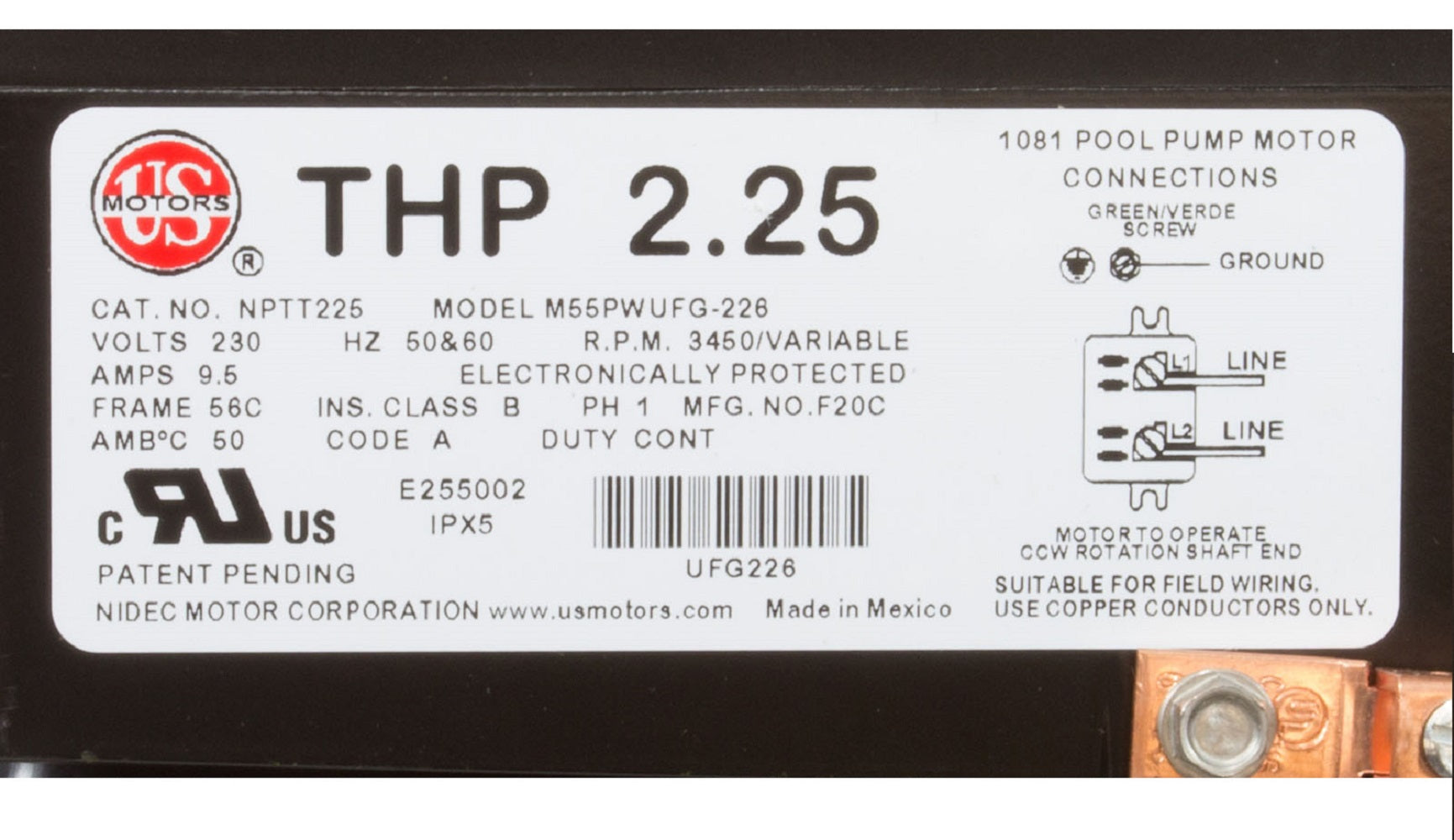 NIDEC NPTQ225 US Motors Neptune 2.25thp SQFL Variable Speed 230Volts 48Y Frame