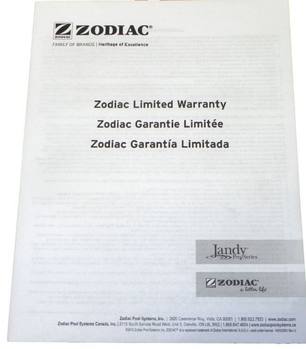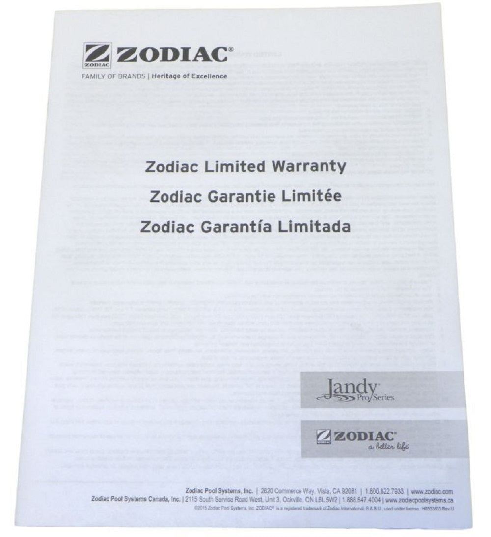 Jandy Pro Series Zodiac Limited Warranty Guide